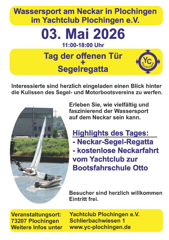 Als mitwirkender Verein war der Yachtclub Plochingen e.V. am 09.06.208 beim Jubiläum des Hafens Plochingen und Firmenjubiläum der Firma Kaatsch mit dabei. Neben wassersportlichen Informationen gab es am Stand die traditionellen Yachtclub-Waffeln. Außerdem wurden kostenlose Hafenrundfahrten von den Mitgliedern des Yachtclubs auf ihren Sportbooten durchgeführt. Das angebotene Schnuppersegeln für KIDS, konnte wegen des starken Wellengangs im Hafenbecken leider nicht durchgeführt werden. Vorstand Gunther Bofinger verwies deshalb auf das anstehende Vereinsjubiläum des Yachtclubs am 01.07.2018 bei welchem neben dem 5. Plochinger Fischerstechen auch ein Schnuppersegeln für KIDS angeboten wird.